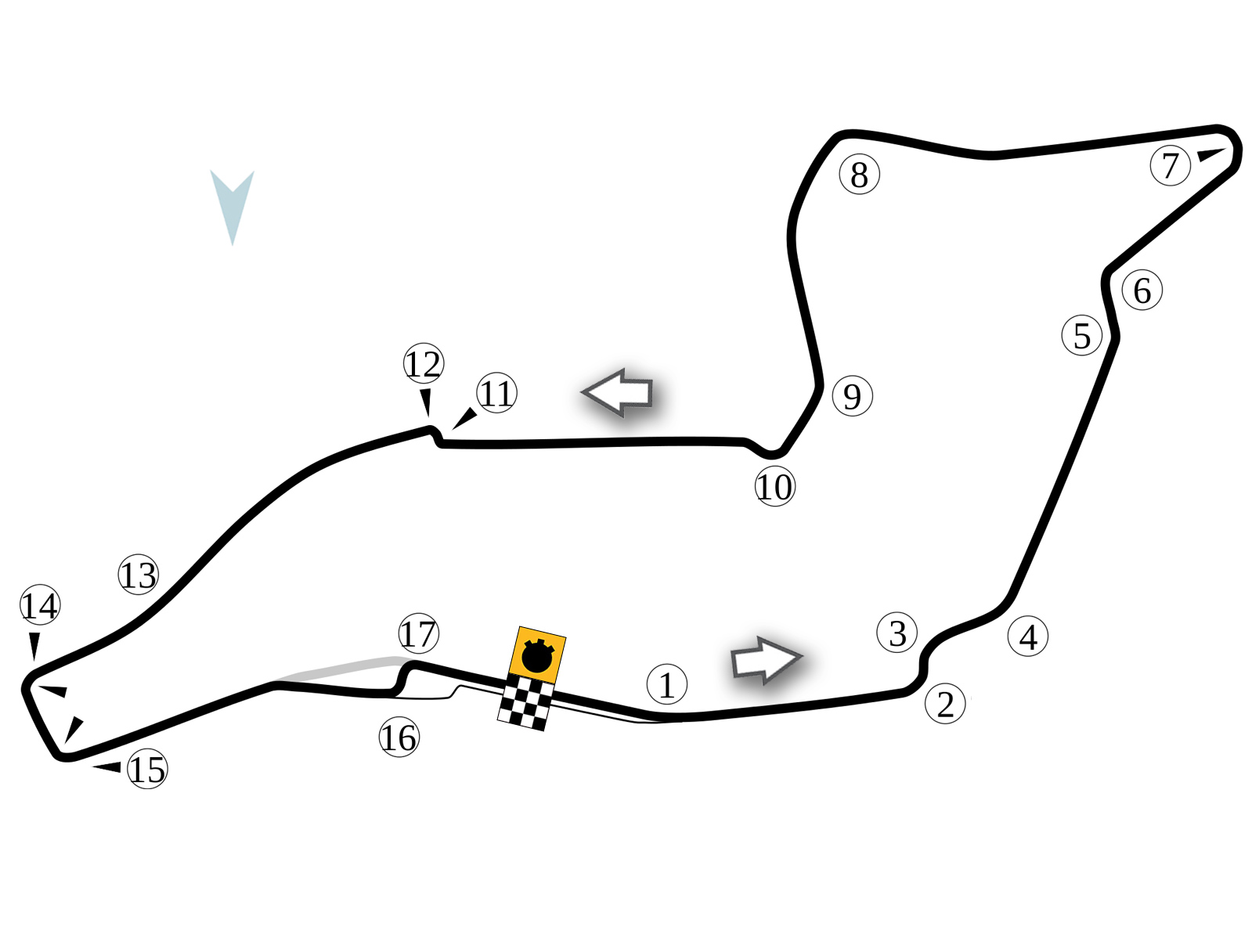 Trať je unikátní tím, že se jako jedna z mála jede proti směru hodinových ručiček. Recept na dobrý čas vyžaduje razantní přejíždění obrubníků, což přináší riziko poškození pneumatik. Velkou výzvou pro jezdce je zatáčka Variante Alta, která rozhoduje o čase dosaženém ve druhé polovině okruhu.